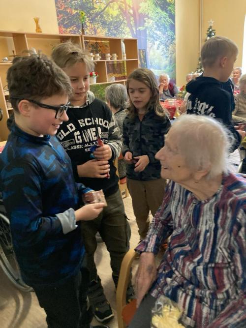 Blíží se doba vánočních svátků a třída 4. B se rozhodla sdílet vánoční atmosféru se seniory v Krásné Lípě. Ve čtvrtek 7. 12. žáci navštívili DpS, zazpívali lidové písničky a koledy, rozdali ručně vyrobené andílky pro štěstí a popovídali si s babičkami. Těšíme se na další setkání.