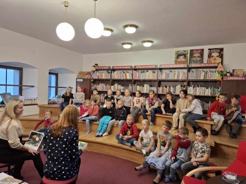 S třídou 1.B jsme navštívili městskou knihovnu v Rumburku. Paní knihovnice nám přečetla pohádku Jak lev pracoval v knihovně.Děti si to moc užily.