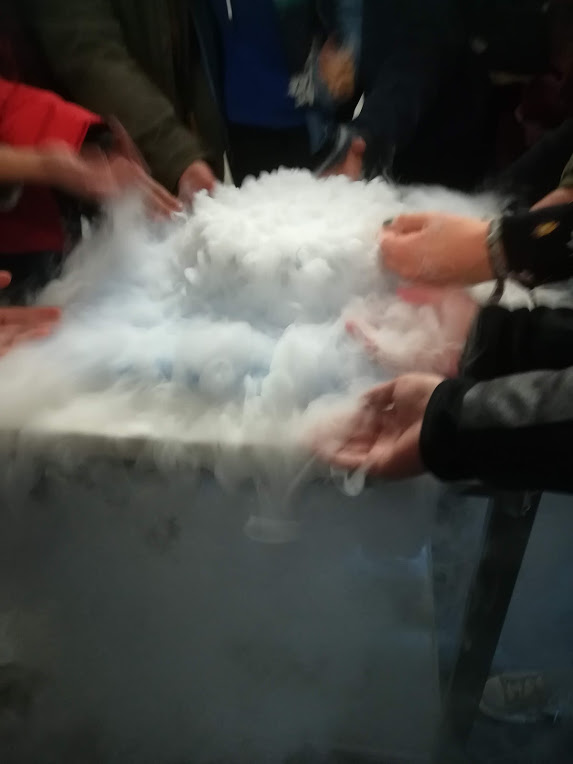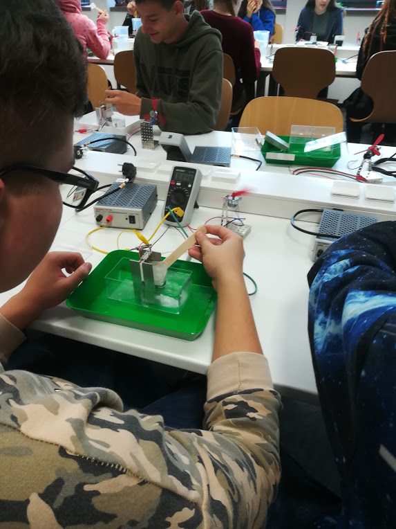 Na univerzitě byly pro žáky připraveny aktivity zaměřené na chemii a fyziku. V chemické laboratoři měli žáci za úkol porovnat obsah oxidu uhličitého ve vzduchu a ve vydechovaném vzduchu. Během těchto pokusů si žáci vyzkoušeli titraci, neutralizaci. Ve fyzikální laboratoři ověřovali vlastnosti látky, jež dokáže vytvářet teplo a zároveň i chladit. Dále shlédli několik pokusů s kapalným dusíkem a supravodivou látkou.