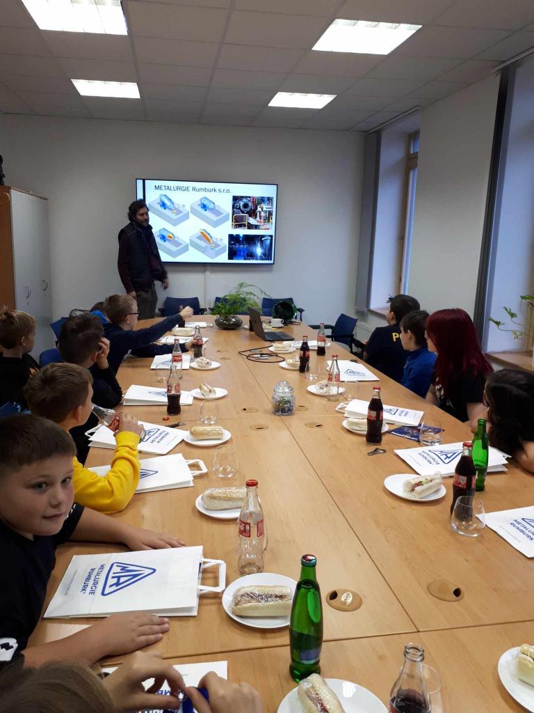 V zasedací místnosti firmy byla pro děti připravena prezentace a občerstvení . Poté následovala prohlídka výroby. Moc děkujeme za možnost nahlédnutí do výrobního procesu a zajímavý výklad.