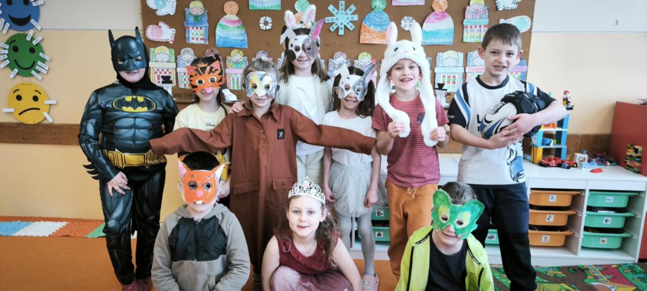Karneval na 1. stupni V úterý 17. 2. se naše třídy proměnily v barevný svět plný princezen, pirátů, zvířátek i superhrdinů. Všichni si tento den moc užili.