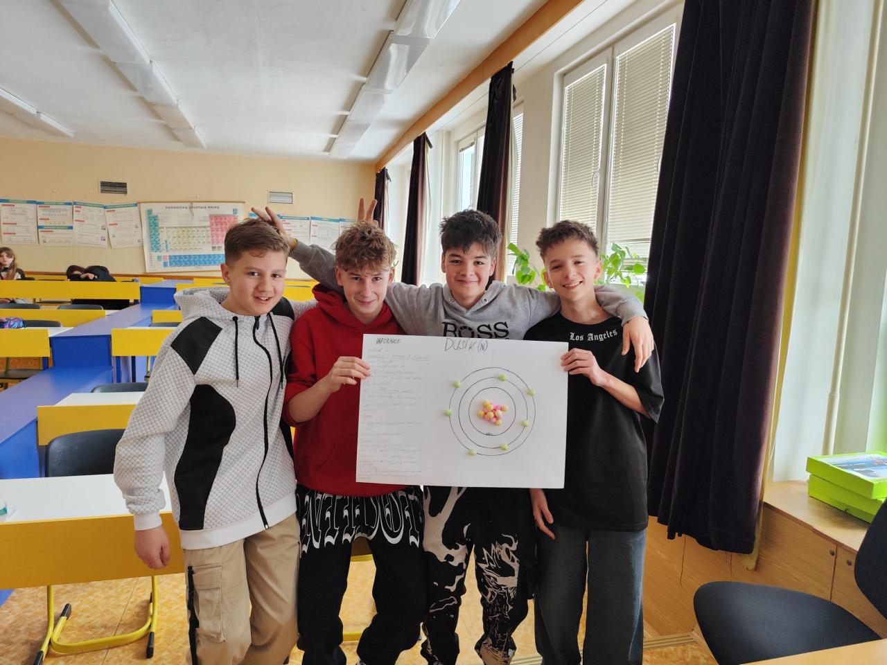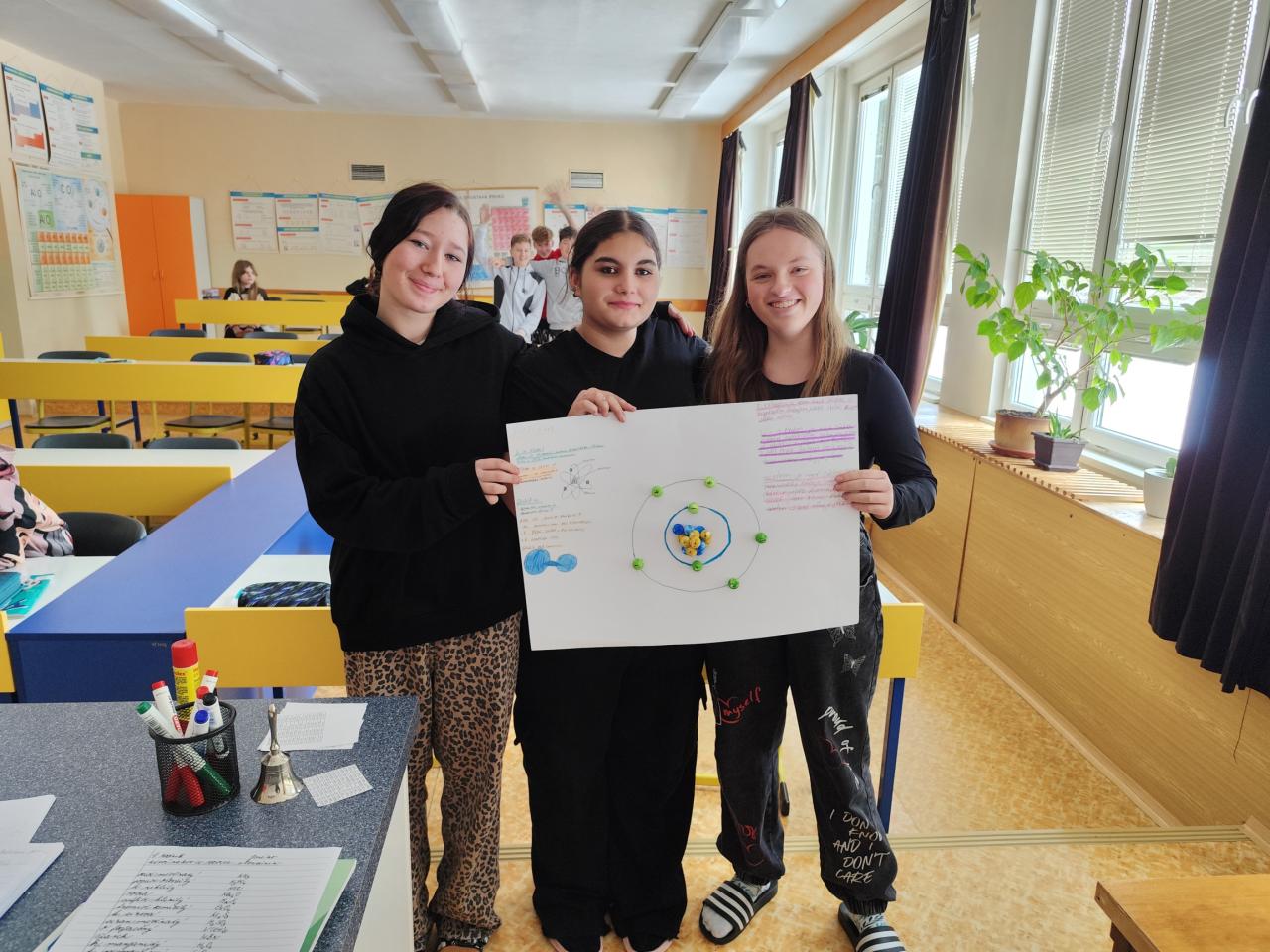 Žáci pracovali ve skupinách a jejich úkolem bylo vytvořit modely jednotlivých atomů. Při práci si procvičili nejen znalosti o složení atomu (protony, neutrony, elektrony), ale také spolupráci, kreativitu a manuální zručnost.