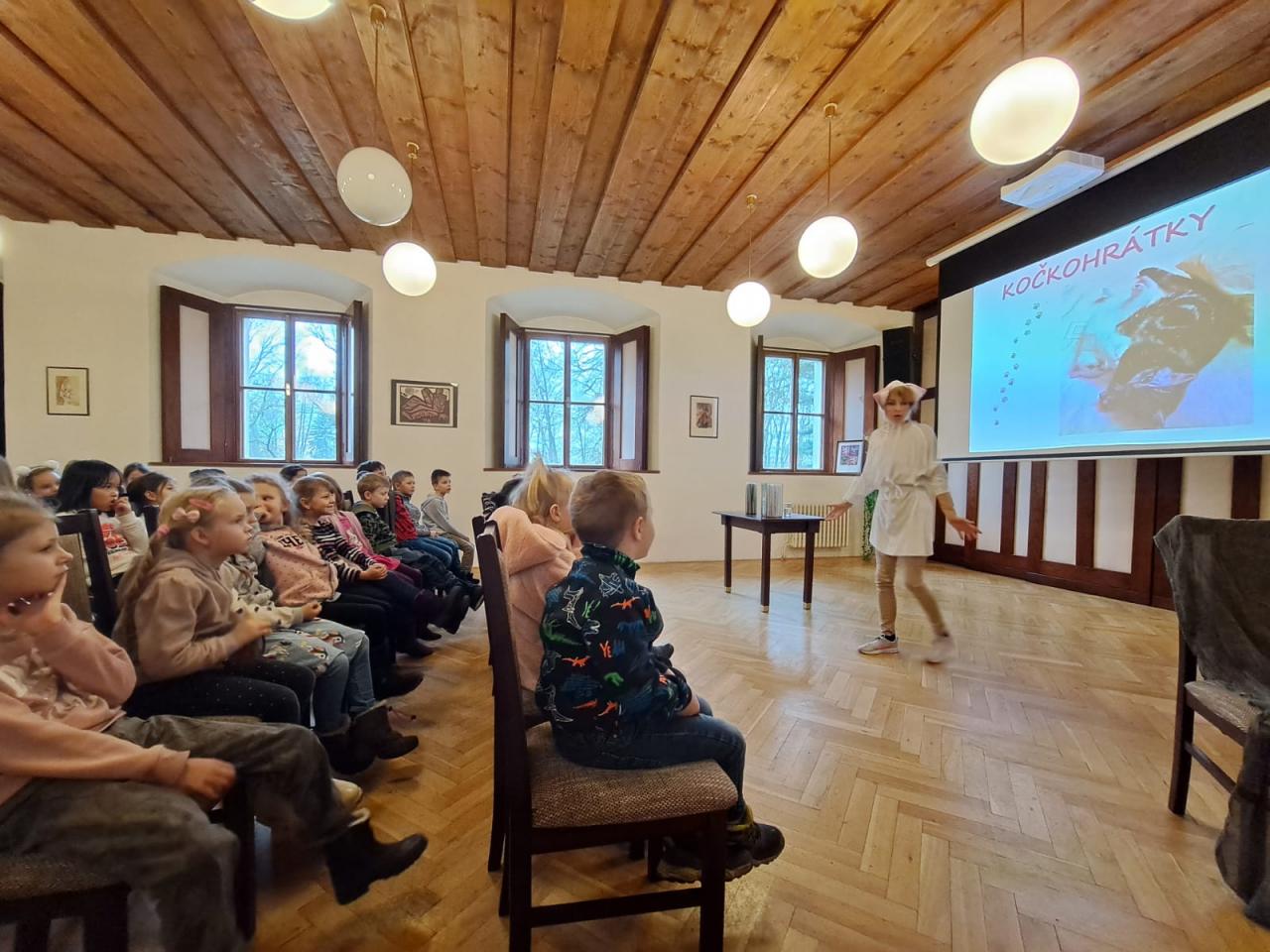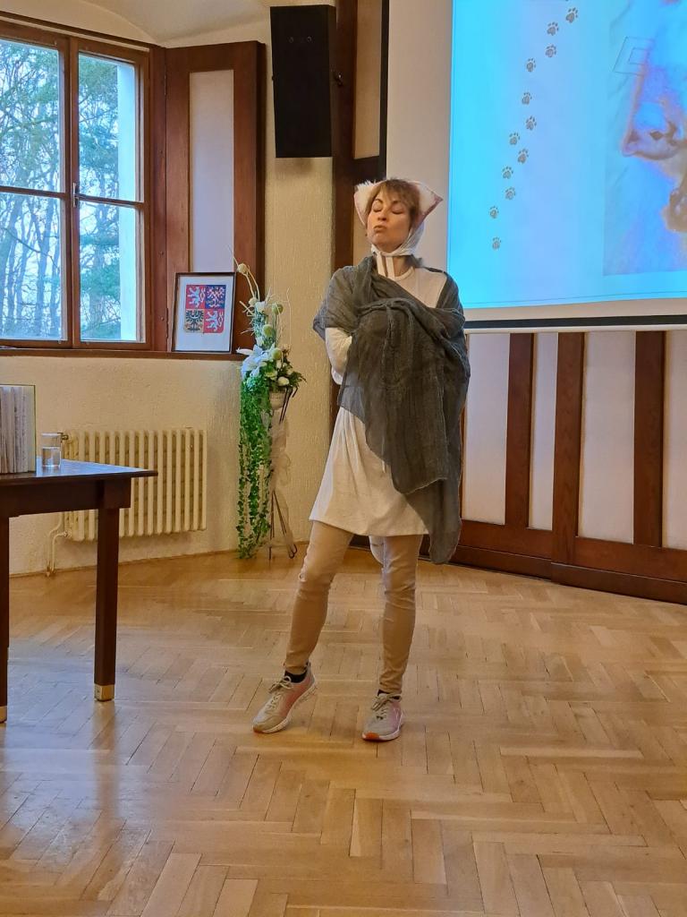 "Z deníku kočičky Ťapičky". Knížku spisovatelky Markéty Harasimové si děti mohly na místě zakoupit. Dětem i paním učitelkám se přestavení moc líbilo.