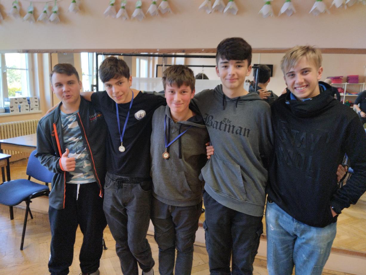 Poprvé v historii naše škola postavila šachový tým a hned velmi úspěšný. V tomto netradičním sportu (z pohledu výkonu) soutěžilo celkem 10 škol v kategorii základní a střední školy. Naši kluci celou dobu byli v popředí a nakonec nám o jednu remízu utekl titul přeborníka okresu. To nám nemuselo moc vadit, neboť do krajského finále postoupila vždy dvě družstva. O naší kvalitě svědčí fakt, že v rámci šachovnic (hráčů) jsme také vybojovali dvě medaile a to na pozici č.1 Ondra Vacek byl druhý nejlepší, když prohrál v 7. partiích jediný zápas a vše ostatní vyhrál a na šachovnici č.2 Jakub Šlégl obsadil 3. místo se 2 prohrami a 5 výhrami. Dále tým doplnili kluci na šachovnici č.3 Kuba Punčochář a č. 4 Jarda Stára. Posledním členem družstva byl Mirek Sychrovský, který obsadil 7. místo v turnaji začátečníků. Kluci zaslouží pochvalu za výborné chování a samozřejmě i za předvedené výkony.