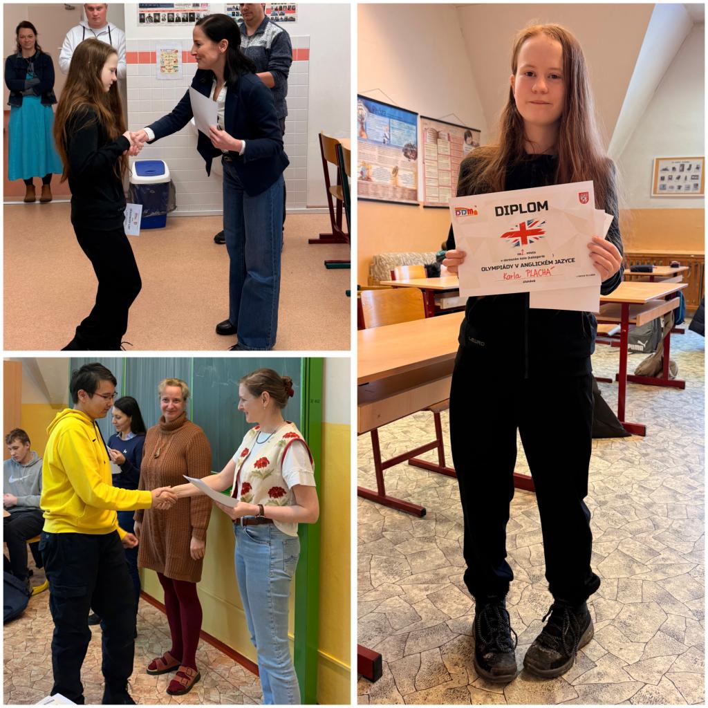 V úterý 10. 2. se v Děčíně uskutečnilo okresní kolo Olympiády v anglickém jazyce, kterého se zúčastnili vítězové našeho školního kola. Karla Plachá vybojovala v kategorii ZŠI úžasné 2. místo a Unudelger Ulzibat pak v kategorii ZŠII skončil desátý.