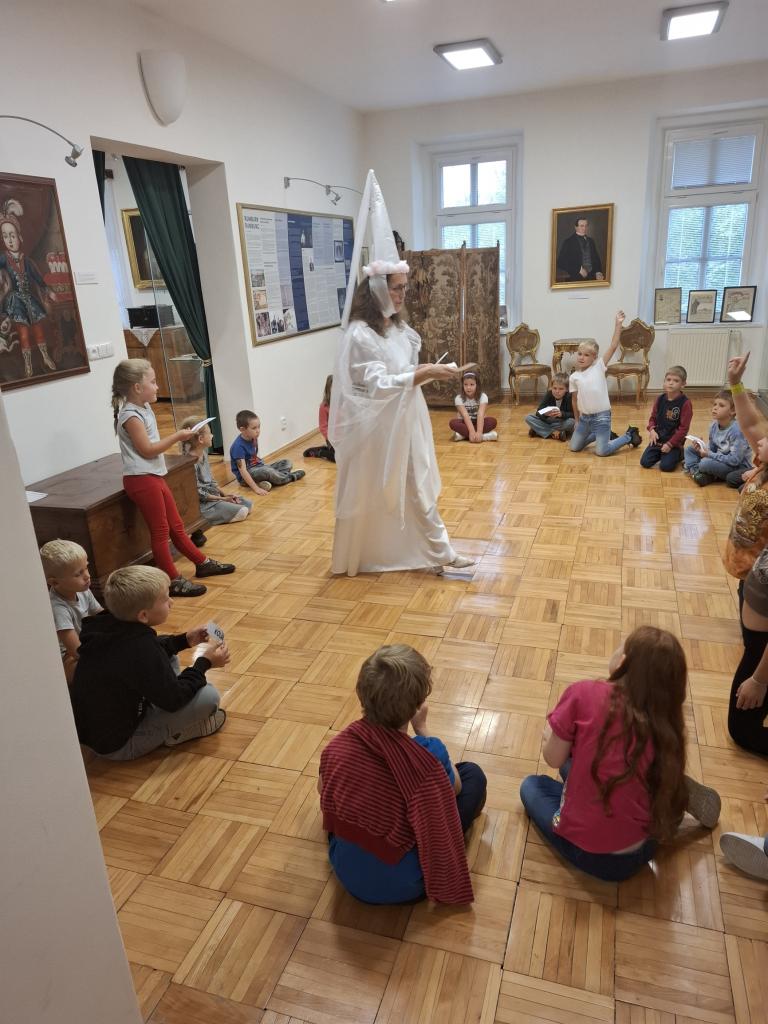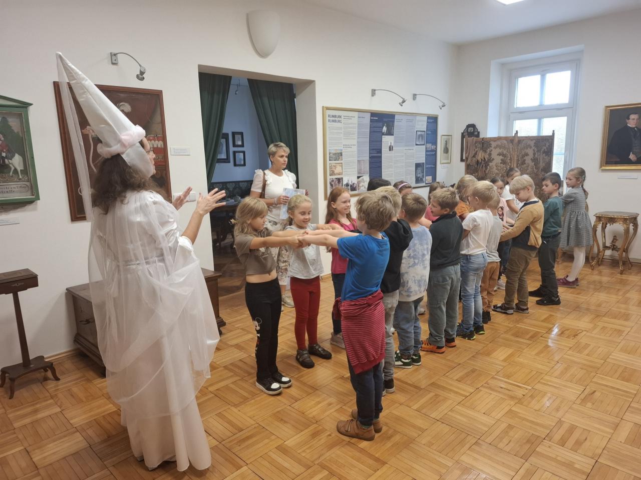 Bílá paní provedla děti celým muzeem. V každé místnosti děti musely splnit nějaký úkol, za který dostaly jedno písmenko. Na konci z písmenek sestavily jméno Bílé paní a dozvěděly se něco o jejím žívotě. Program byl velmi zábavný a poučný. Děti se bavily a s plným nasazením plnily všechny úkoly a odpovídaly na všechny otázky, které jim Bílá paní pokládala.