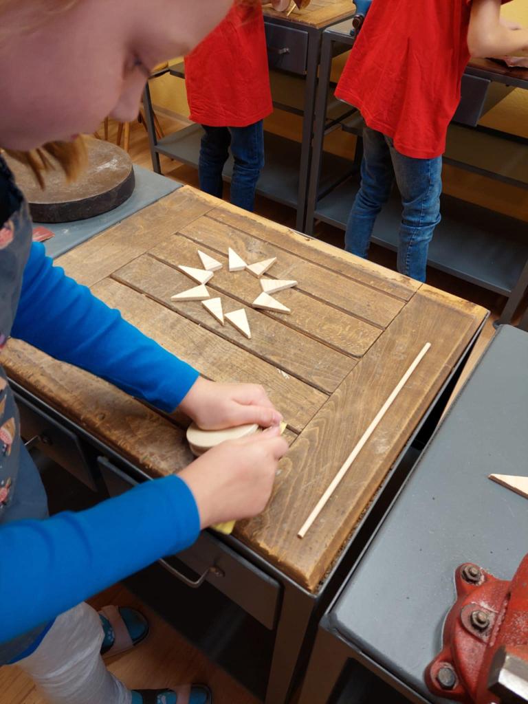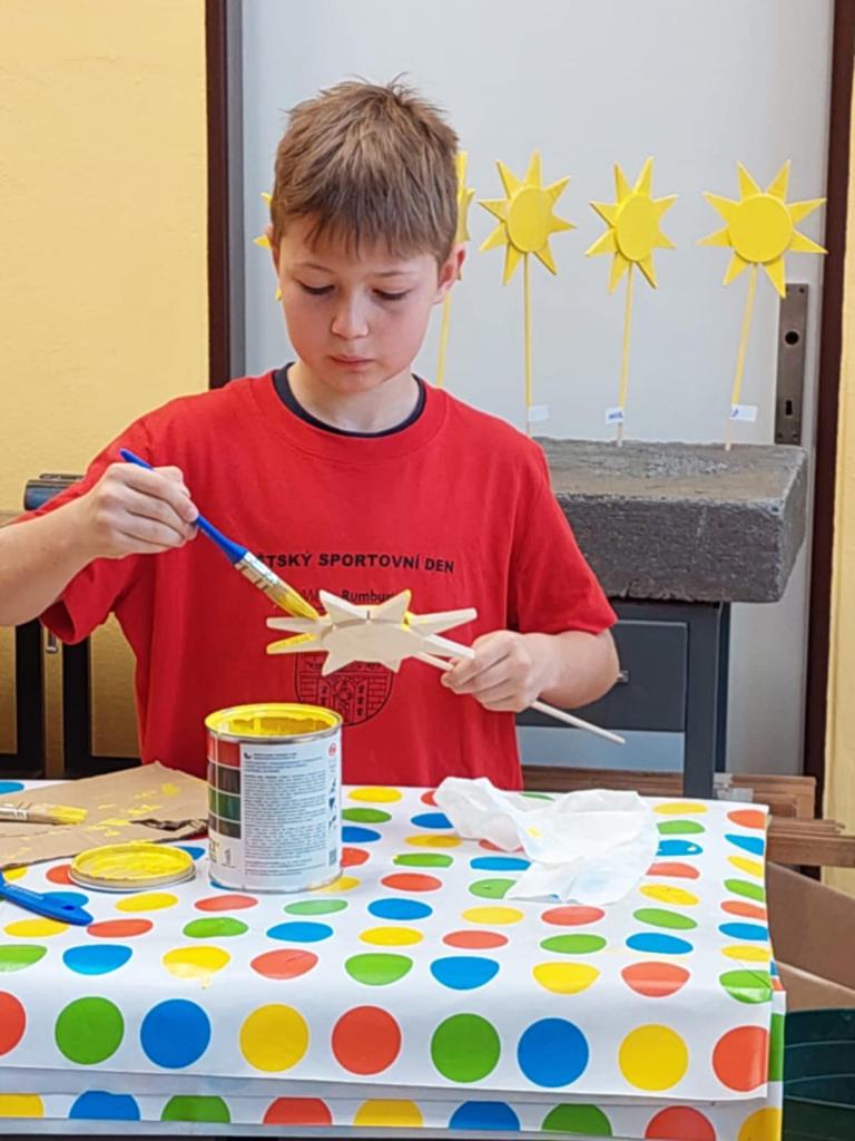 Děti vlastnoručně vyrobily dřevěné zápichy do květin ve tvaru slunce. Naučily se pracovat s jednoduchým nářadím, dávat pozor na bezpečnost a vzájemně si pomáhat. Všichni si tak vyzkoušeli, jak je důležité mít trpělivost, přesnost a trochu té technické zručnosti.