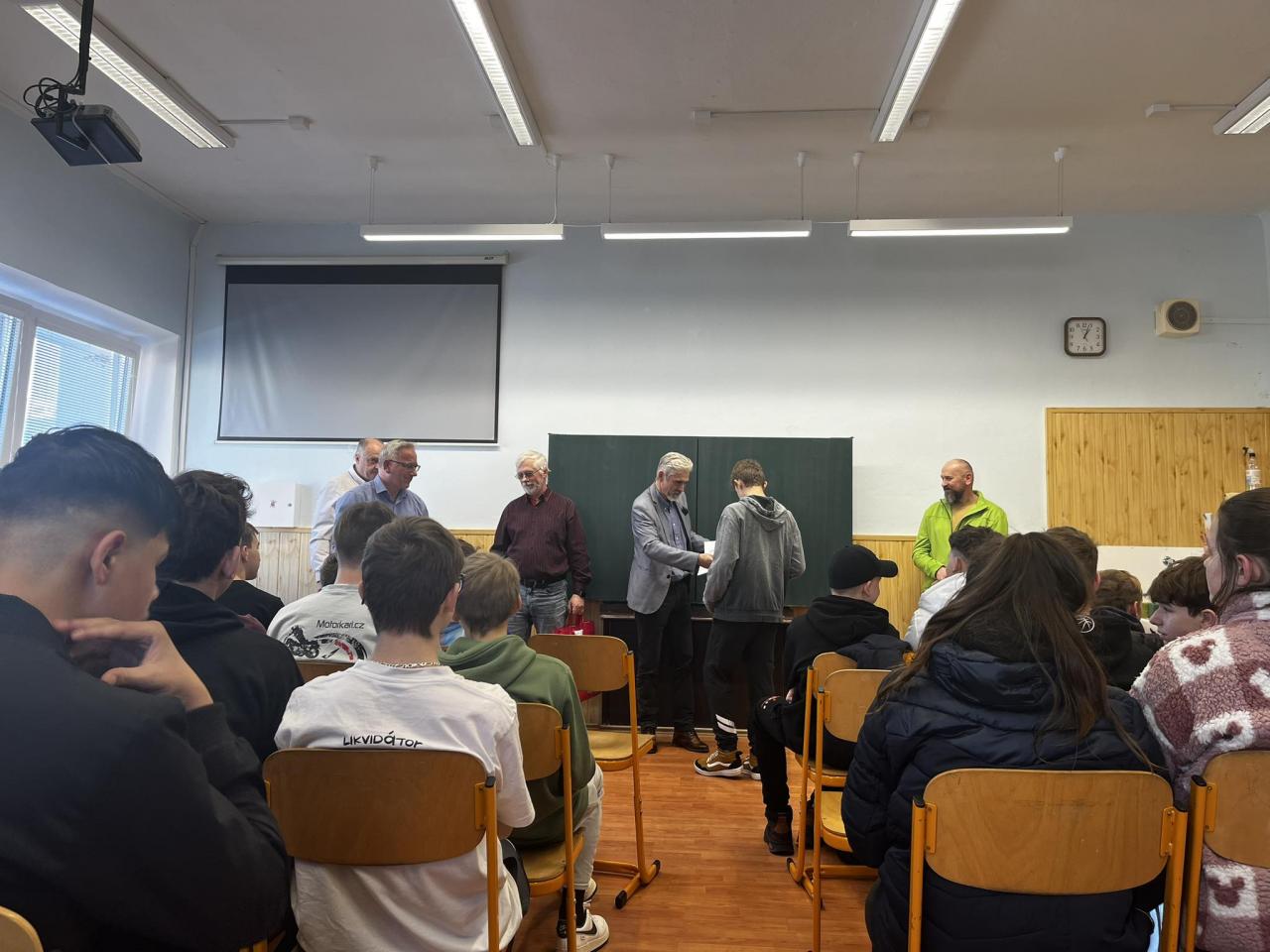 Dne 19.1. 2024, od 8:00 do 13:00 hodin, proběhla na škole VOŠ, SPŠ a SOŠ Varnsdorf soutěž ,,Řemeslo má zlaté dno”, které se zúčastnili naši žáci z 9. ročníků. Soutěž měla 2 části. První je řemeslná - žák vyrábí zadaný výrobek v oblasti, na kterou je nominován. Druhá část je znalostní - celé družstvo vyplňuje test z oblasti techniky a gastro. Marek Pokorák - elektrikář, Miroslav Zinek - automechanik, Matěj Ledvina - truhlář, Stanislav Procházka - kovoobráběč, Aleš Trojan - kuchař. Výrobky se jim moc povedly, všichni si je pyšně odnesli domů. I přestože neobsadili první příčky, protože konkurence byla opravdu veliká, všichni si soutěž moc užili. Soutěže se zúčastnilo celkem 9 škol.