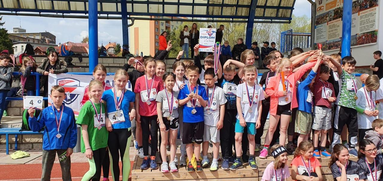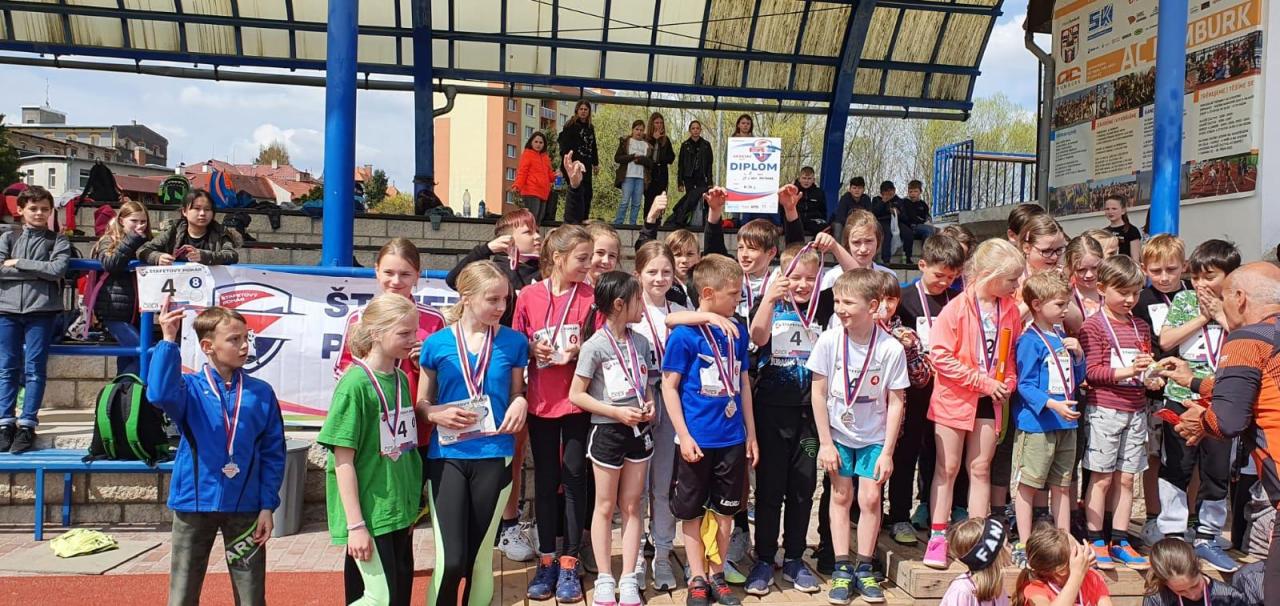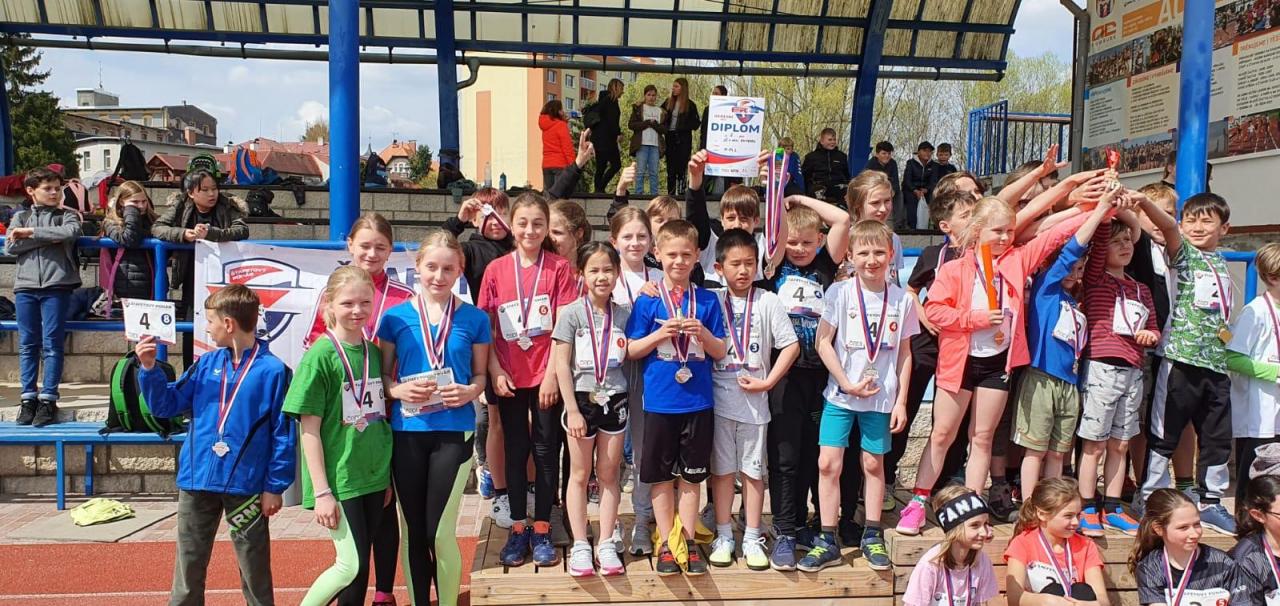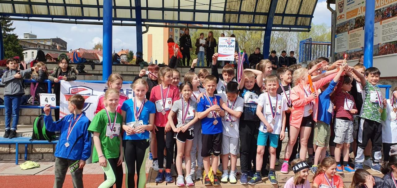 V soutěžích jsme měli 2 štafety, kde jedna byla tvořena 8 žáky 3.A a 8 žáky 5.A a ta druhá byla reprezentována stejným počtem žáků, ale ze tříd s označením B (3.B,.B). Družstvo také muselo tvořit stejný počet chlapců a díved - vždy tedy z každé třídy 4 kluci a 4 holky. Mezi běhy každý soutěžil ve skoku do dálky z místa a hodu medicimbalem a tam byli děti naší školy mezi medailisty. V jednotlivých bězích se nám také dařilo, ale protože se sčítaly výsledky běhu na 8x100 metrů ( zvlášť 3. třída a zvlášť 5. třída) + 8x200 metrů (opět 2 běhy, ale v každém byly 2 dívky a 2 chlapci ze 3. a 5. ročníku). Po součtu všech 4 časů na naše družstvo ze 3.A + 5.A vyšlo pořadí se stříbrnými medailemi za ZŠ Dolní Podluží. Velké poděkování patří za doprovod paní učitelce Marice Černé a hlavně povzbuzujícím žákům z 5. A a 5. B + jejich třídním učitelkám Mgr. Petře Škvrnové a Mgr. Petře Zavadilové.